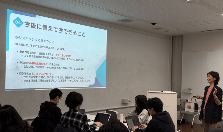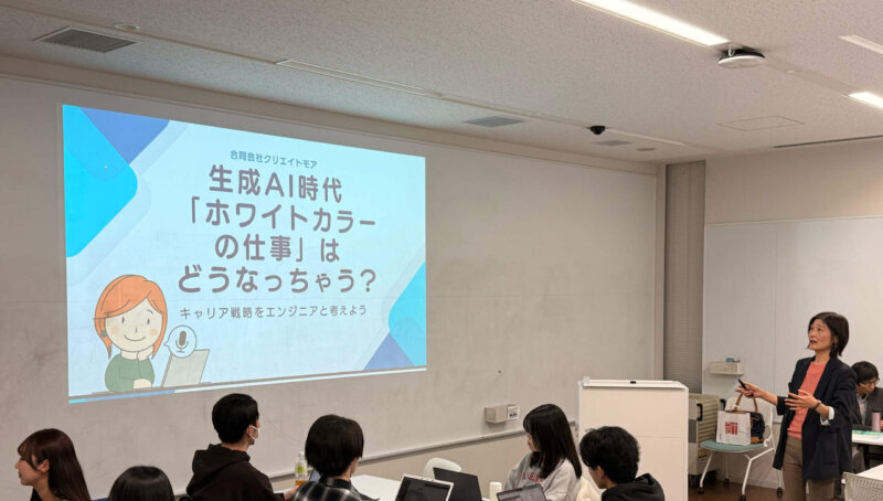 専修大学経営学部の岩田弘尚教授のゼミナールにおいて、【生成AI時代ホワイトカラーの仕事はどうなっちゃう?~キャリア戦略をエンジニアと考えよう】セミナーを実施いたしました。