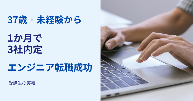 オザキ様は教育業界のご出身で、37歳からゼロベースでプログラミングを学び、わずか1か月の転職活動で3社から内定を獲得されました。